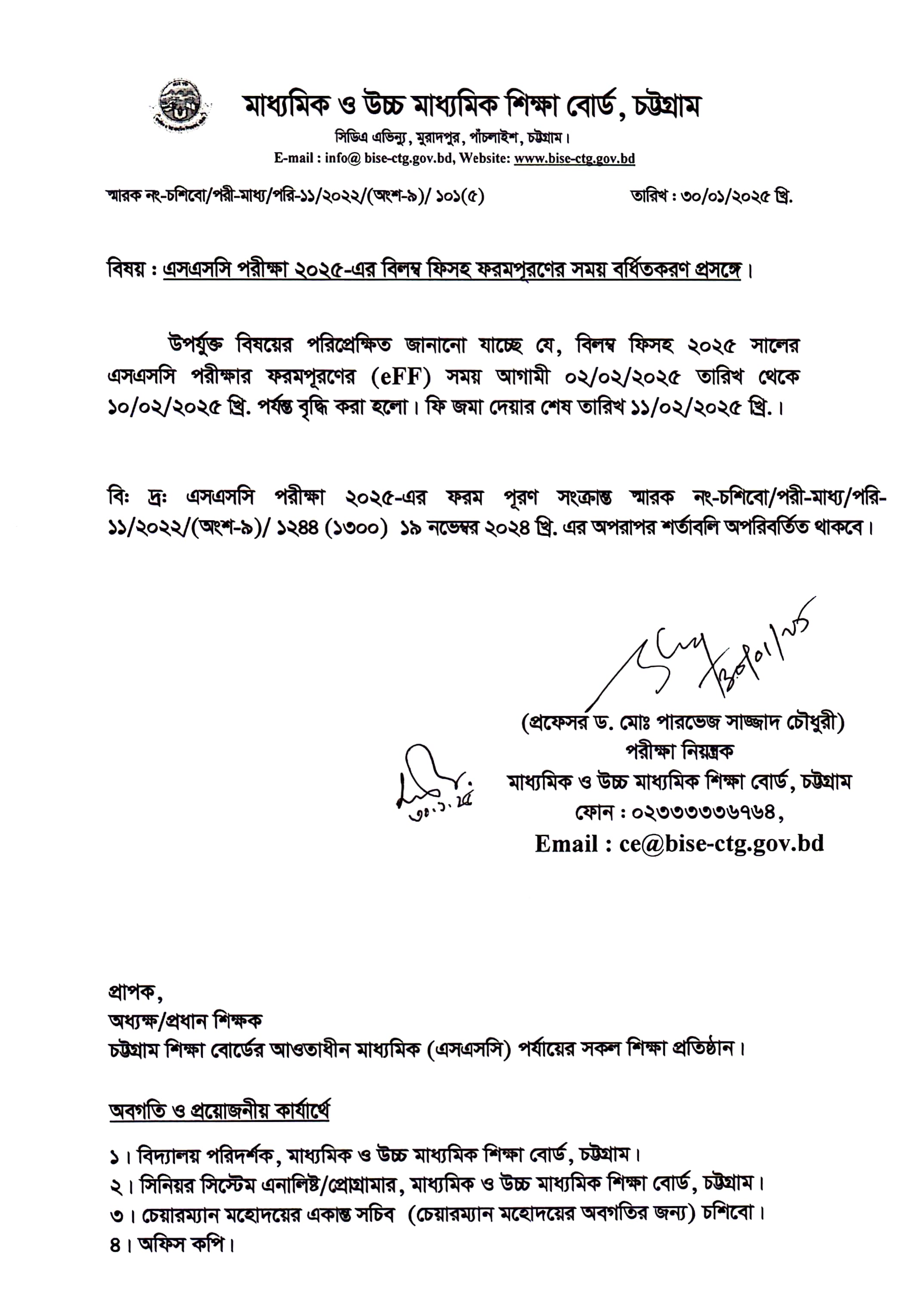 নোটিশ এসএসসি পরীক্ষা ২০২৫-এর বিলম্ব ফিসহ ফরম পূরণের সময় বর্ধিতকরণ সংক্রান্ত বিজ্ঞপ্তি |
