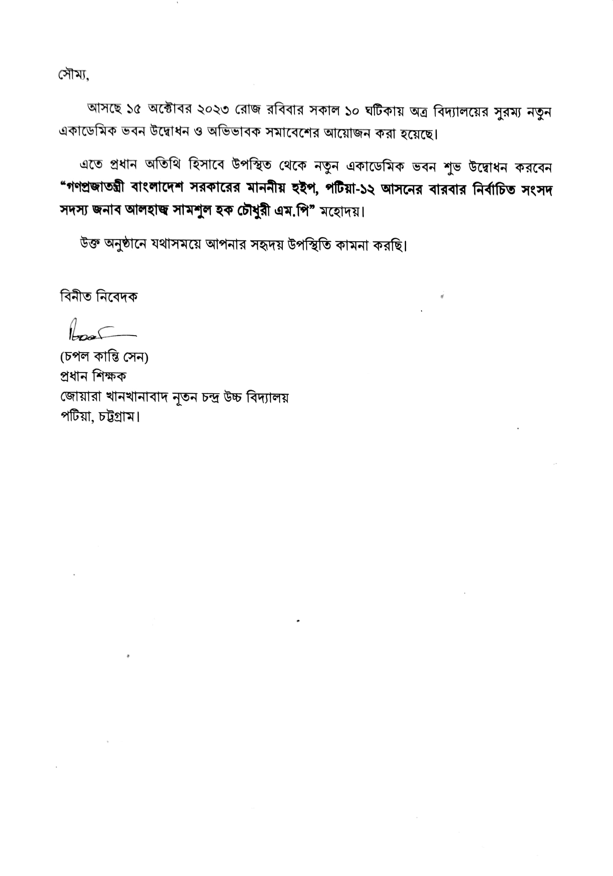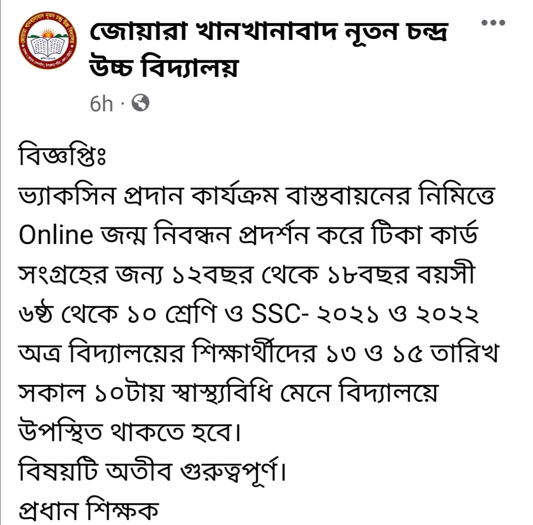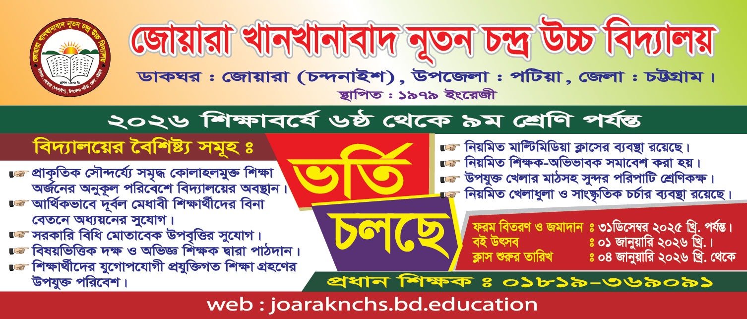 ২০/০৬/২০২৪ এতদ্বারা অত্র বিদ্যালয়ের শিক্ষার্থী ও সংশ্লিষ্ট সকলের অবগতির জন্য জানানো যাচ্ছে যে, আগামী ২৬ জুন, ২০২৪খ্রি: তারিখ হতে যথারীতি শ্রেণি কার্যক্রম চলমান থাকবে। |